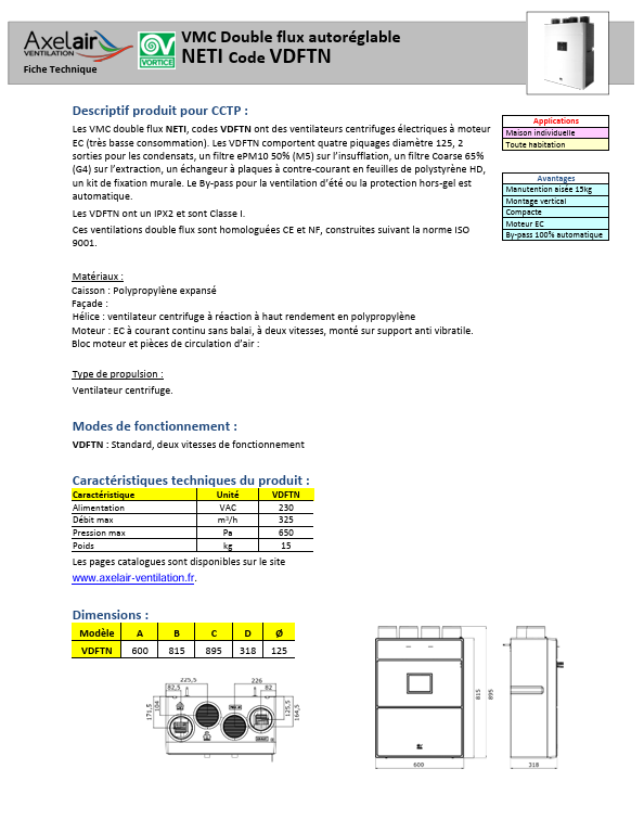 VMC double flux haut rendement NETI de Vortice : compacte, légère et aux normes