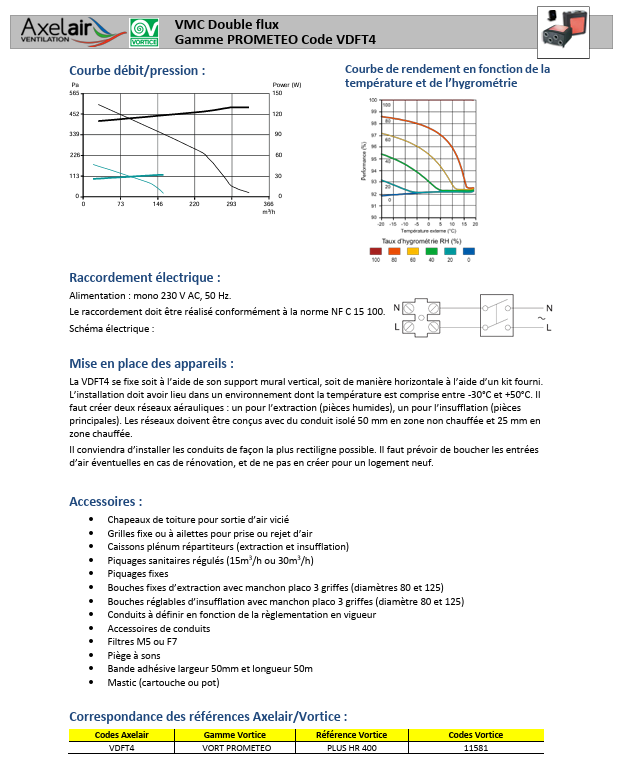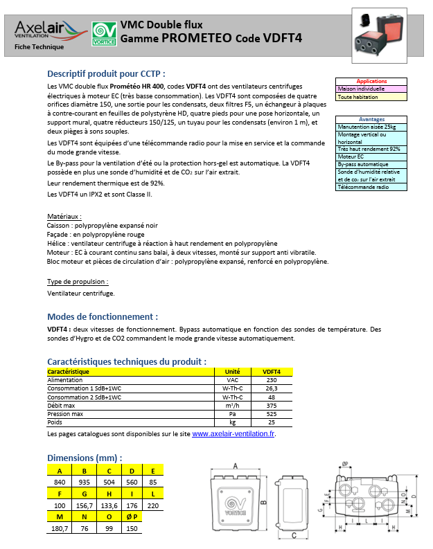 La VMC double flux Prometeo de VORTICE est à très haut rendement, installation au mur, plafond ou combles.
